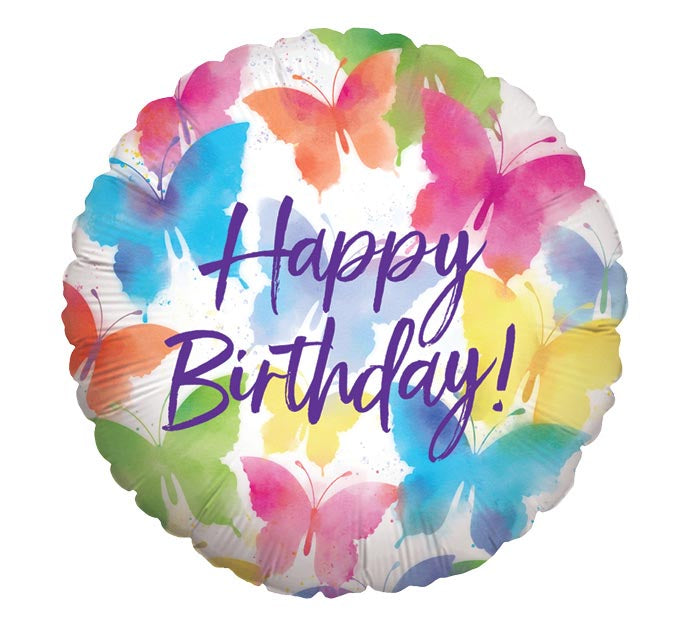 Send her your birthday wishes with this delightful 17 inch birthday balloon featuring butterflies with a Happy Birthday message in the center.