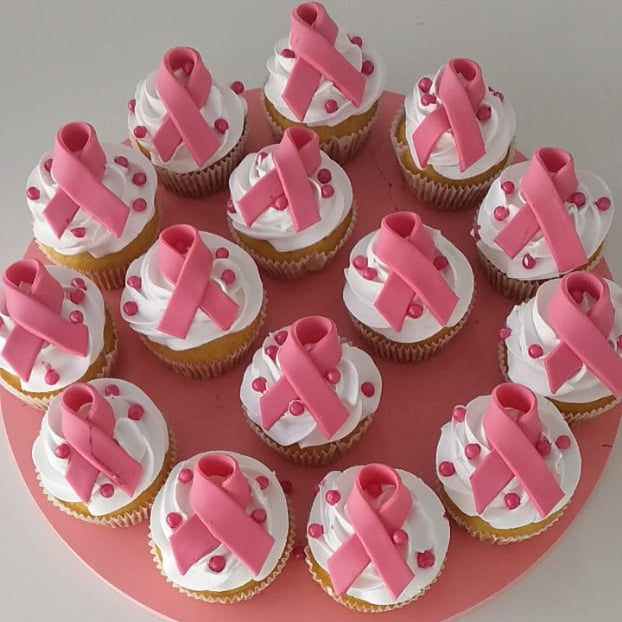 50 Breast Cancer Pink Ribbon Shaped Cupcakes