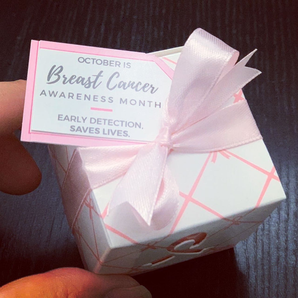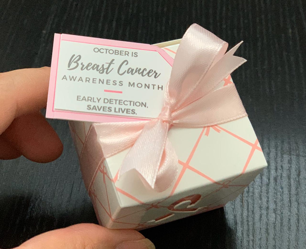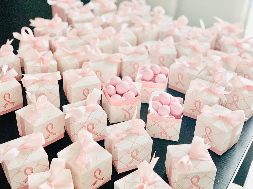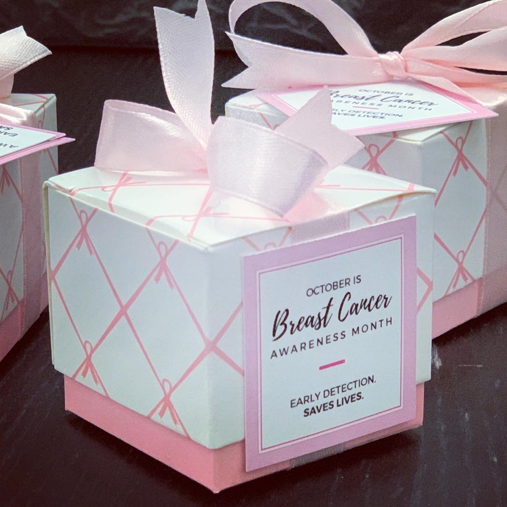 Mark Breast Cancer Awareness month with something sweet for your guests. Featuring pink boxes holding delectable candy, which your recipients can pull open to enjoy.