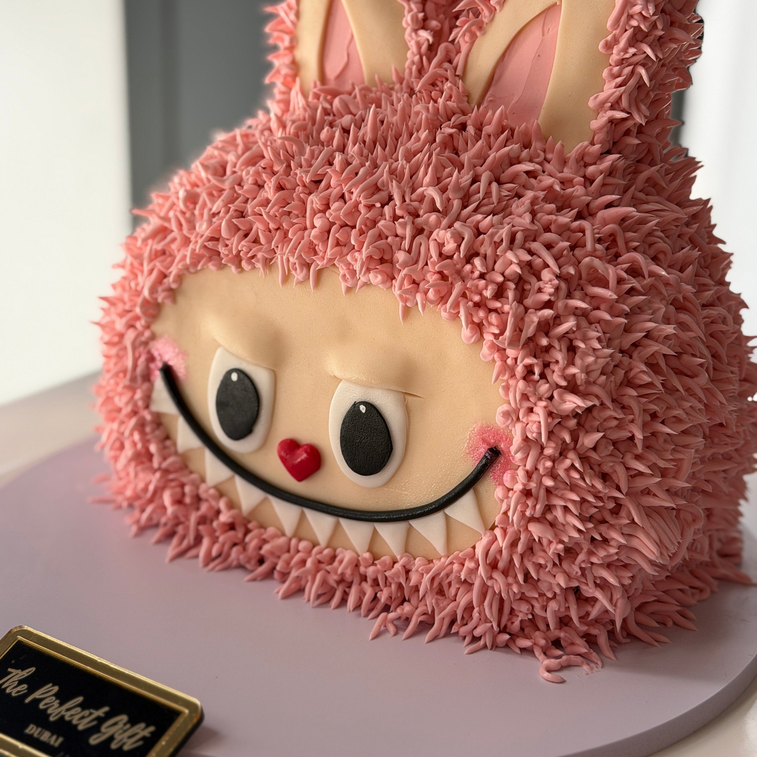 Surprise them with these fun sculpted 3D Labubu cake! This cake is made out of a sponge base available in 3 flavors and is decorated in a soft frosting to look like Labubu. This monster design cake is a great way to add some fun into birthdays and special celebrations!