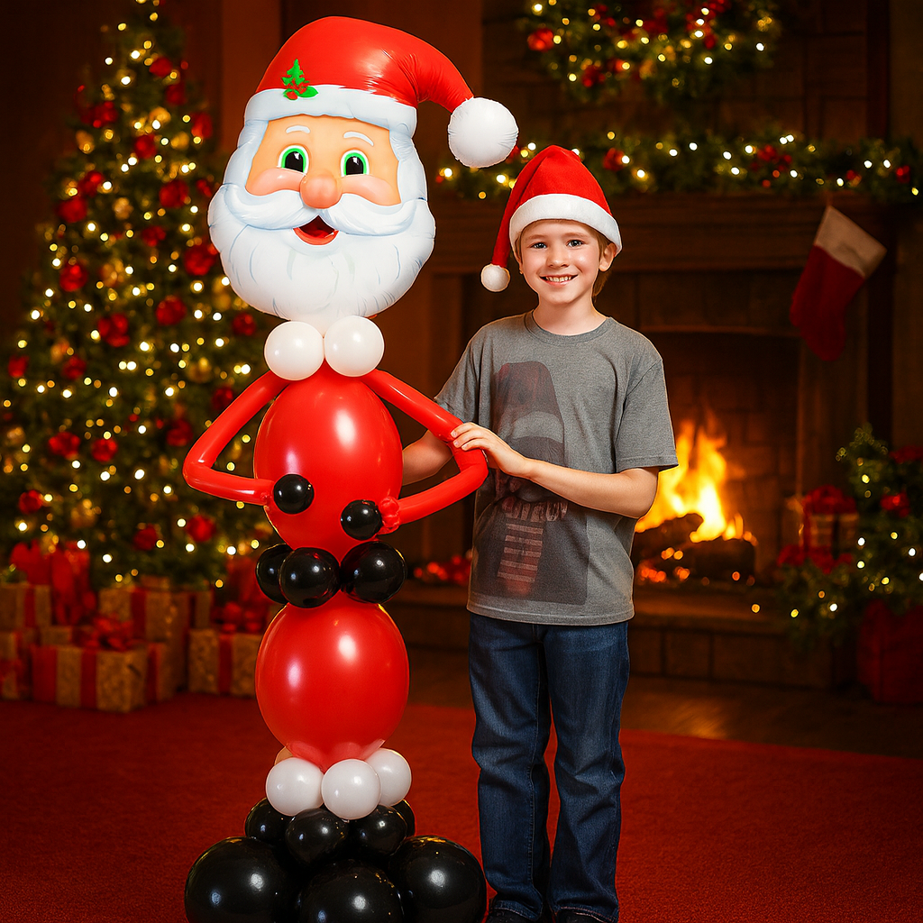 This Christmas holiday, surprise them with a whimsical Santa Balloon! Featuring a balloon stand arranged in the shape of a tall Santa Claus. A great addition to any Christmas celebration!