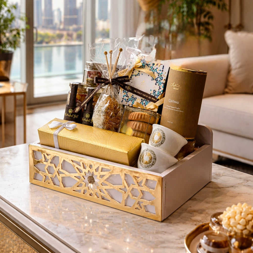 Surprise loved ones, family, friends, colleagues or corporate clients with these luxury Eid gift arrangement! Presented in an elegant tray, the eid gift hamper Includes: