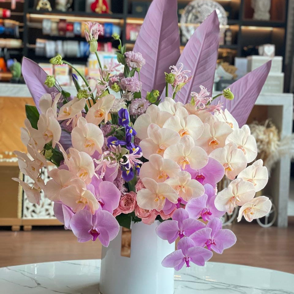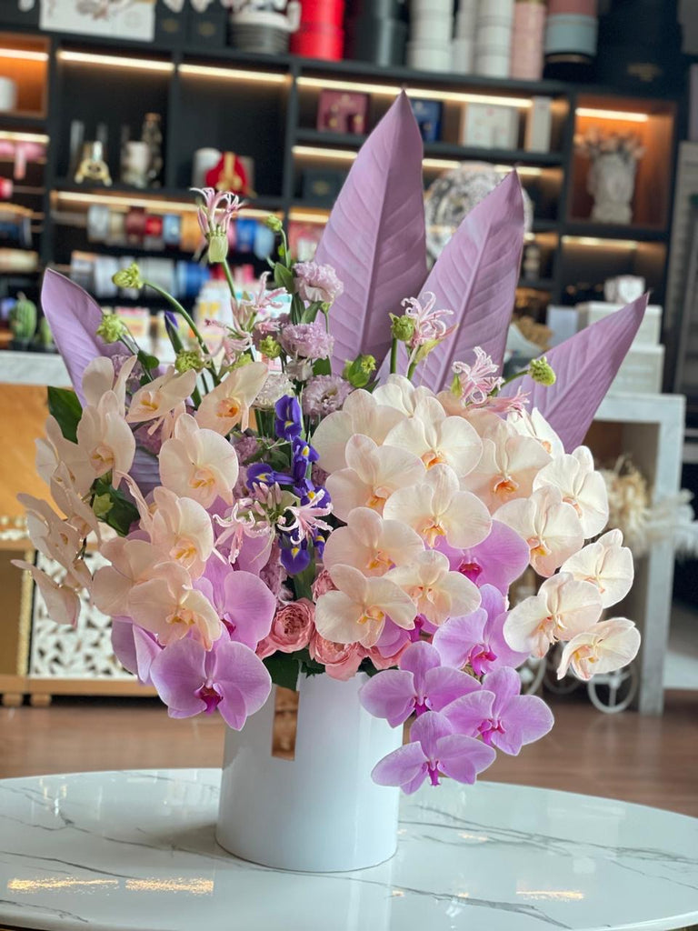 Impress your loved one with this incredible flower arrangement! Beautiful, lush orchids and luxury flowers carefully arranged in an elegant gift box.