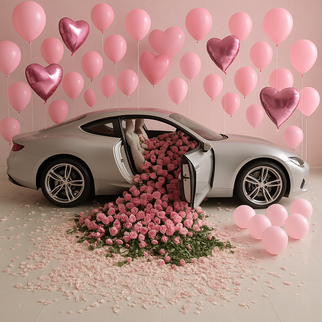 Luxury Car Roses Decor with 50 Balloons