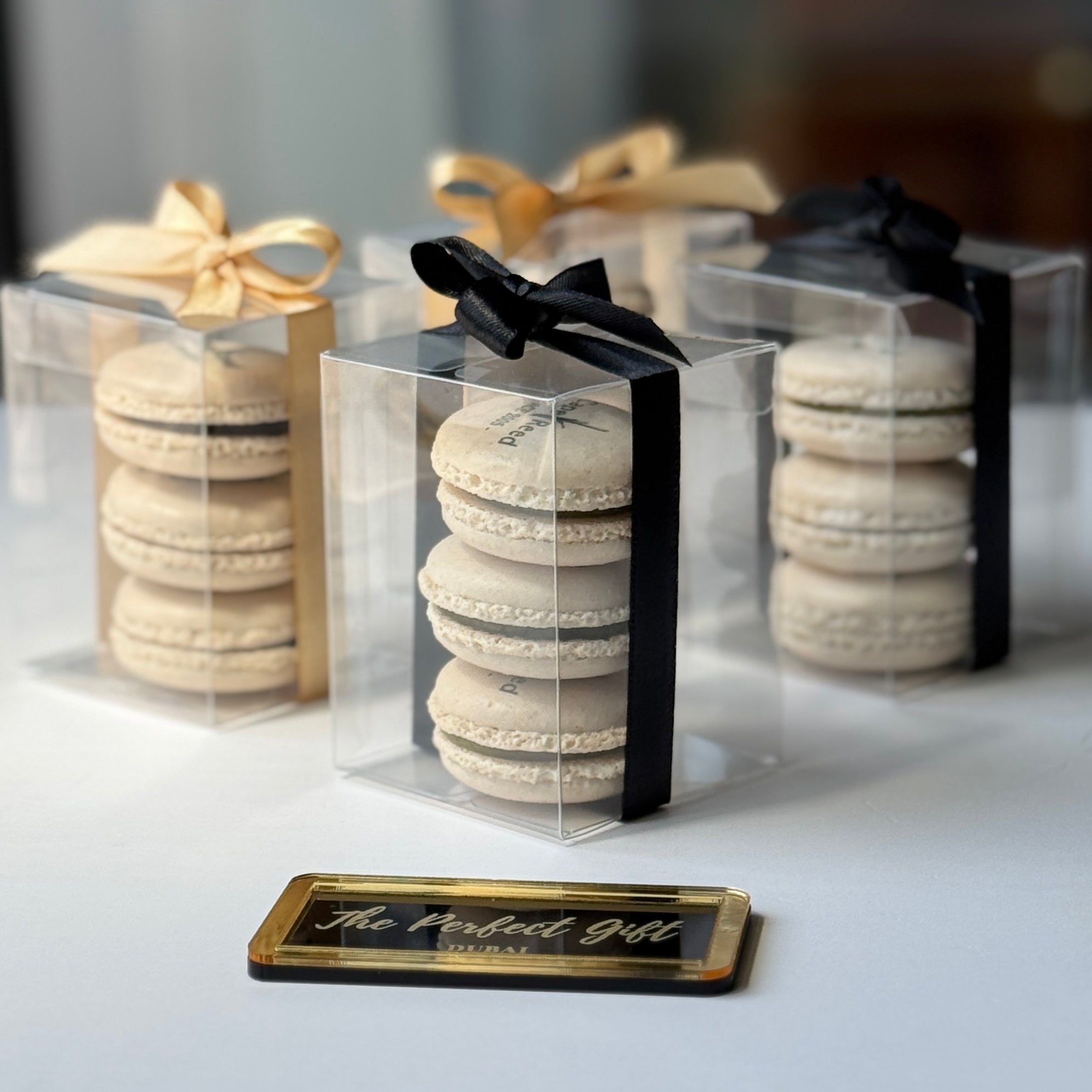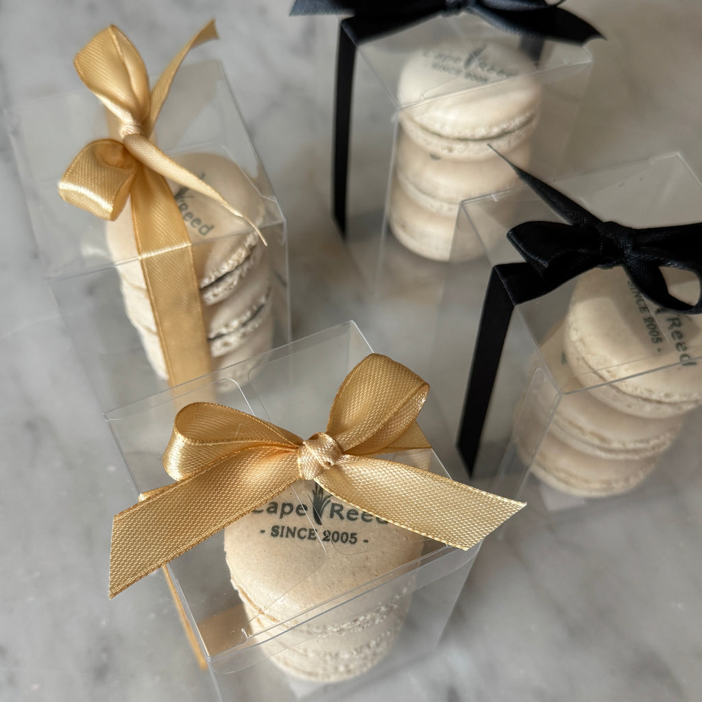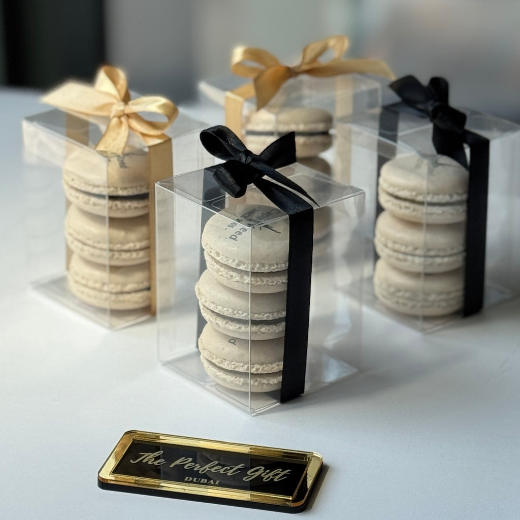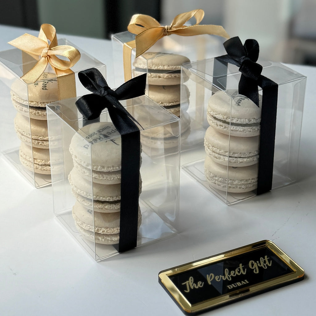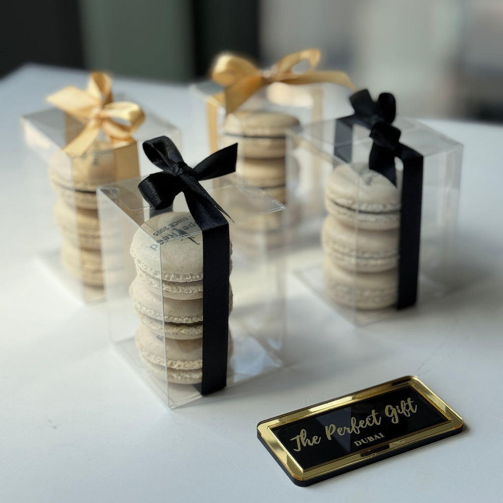 Complete your corporate event, opening ceremony, gala dinner or product launch in style with these elegant branded macaron giveaway. Macarons are presented in a lovely clear plastic box, which is completed with an elegant ribbon in the color of your choice. Choose to send these giveaways with or without tags, along with a personalized ribbon. Also suitable for staff giveaways on Ramadan, Easter, Christmas Anniversary or any other occasion!