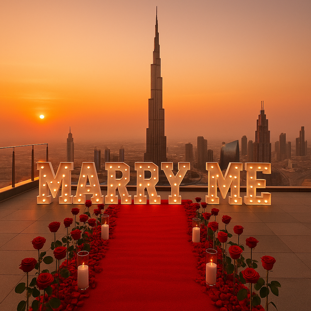 Propose to her and Create a magical surprise with this MARRY ME Decoration setup Package which includes (rental basis);