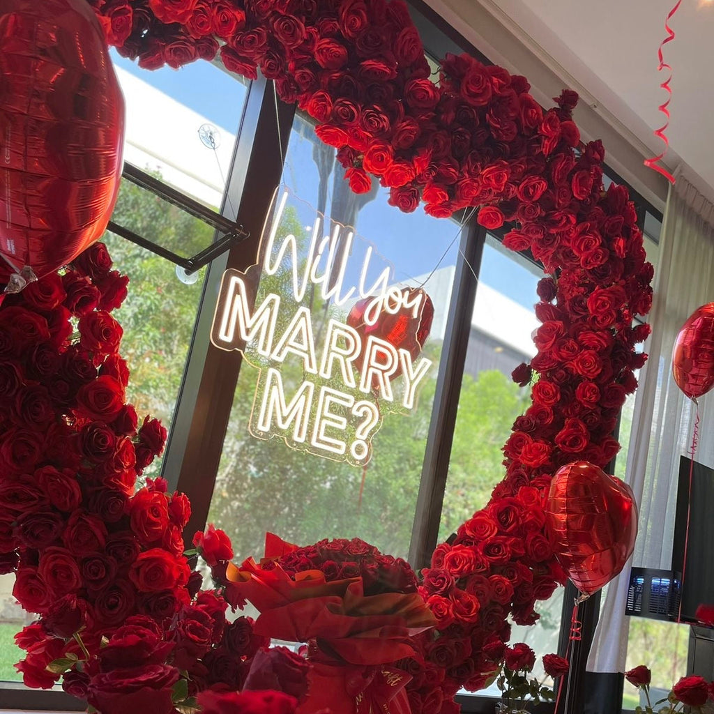 'Will you Marry Me' Romantic Heart Arch Setup