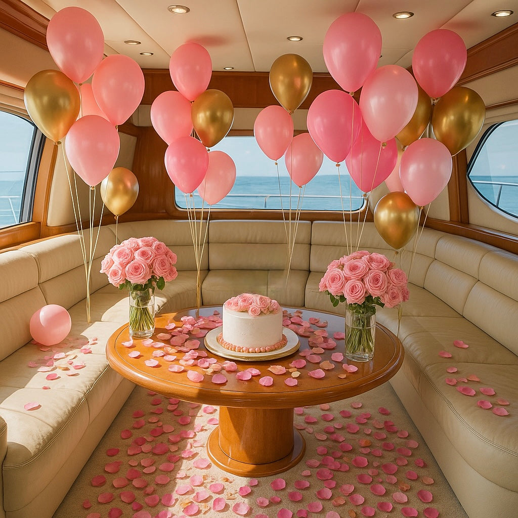 Balloons, Cake & Flower Decoration for Yacht - Pink