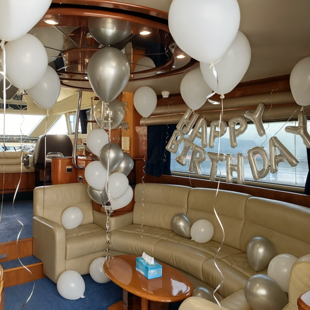 Decorate your yacht for your special occasion with these beautiful balloons and birthday letters! Choose the number of balloons in the options below and colors as per your preference.
