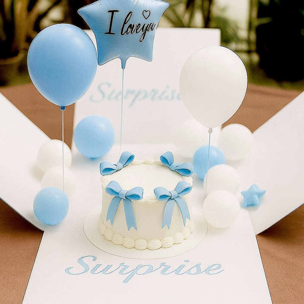 Give your loved one a magical gift experience they won't forget! Surprise them with this wonderful gift box, that opens to a birthday cake for 5-6 persons that's been carefully put together with celebratory balloons that float when the box is opened.