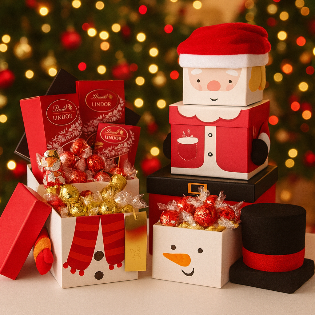 - Christmas themed gift box set tower of 3 pieces (depends on stock availability either Santa, Elf or snowman)